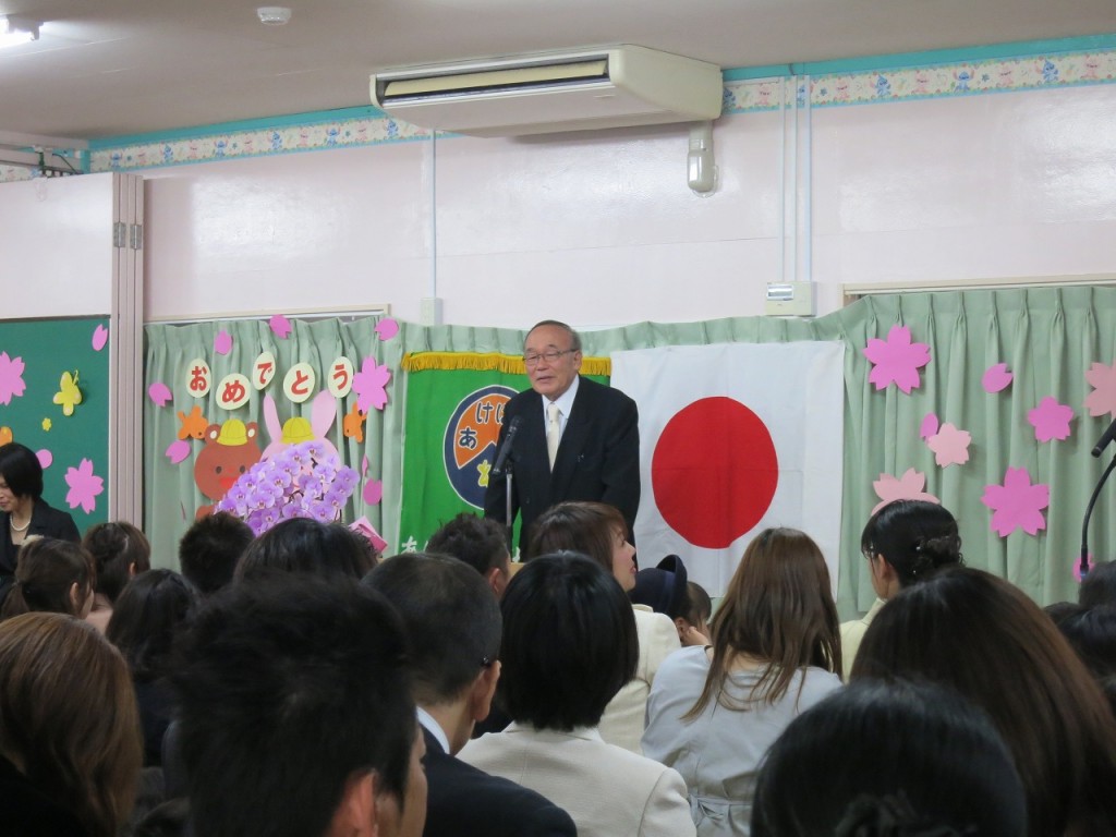 園庭のチューリップもたくさんの花々が咲き誇っている今日の良き日に、多くの新入園児を迎えて入園式が挙行されました。赤ちゃんらしい手をしっかりお母さんに握らせてニコニコ笑顔のお友だちが集い、式典を行いました。ご家庭であたたかい愛情いっぱい受けて育った新入園児はいよいよ集団生活です。期待感でいっぱいでしょう。